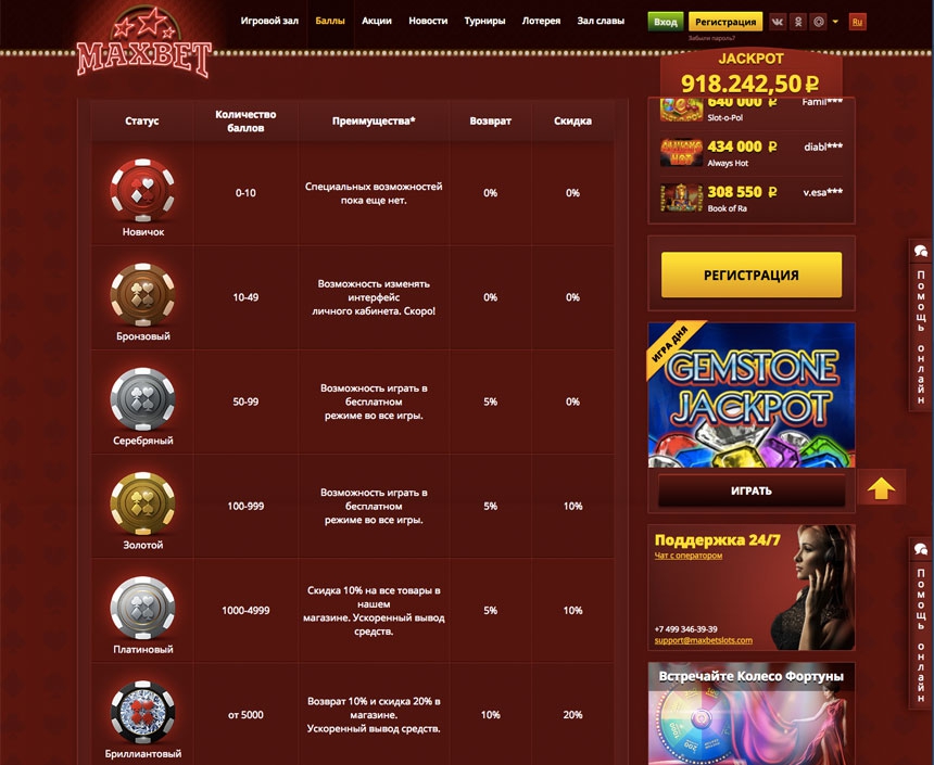 Последние два пункта стоит пояснить. Зеркало позволяет не только обеспечивает вход, а и вознаграждает любой реальный игровой опыт. За игру с денежными ставками тут даются баллы лояльности. Отыграл человек 100 рублей – получил 1 балл. А когда их наберется много, то повышается статус. Это вроде поясов в каратэ, своеобразная система рангов.